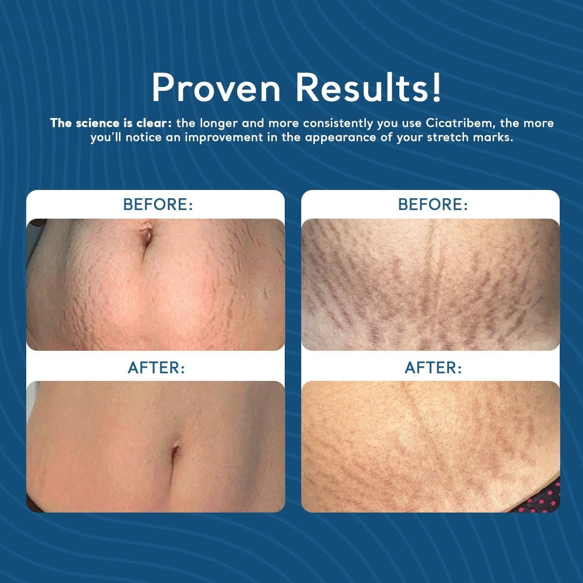 - Reduz qualquer tipo de estria! Incluindo estrias roxas, estrias vermelhas e estrias brancas.